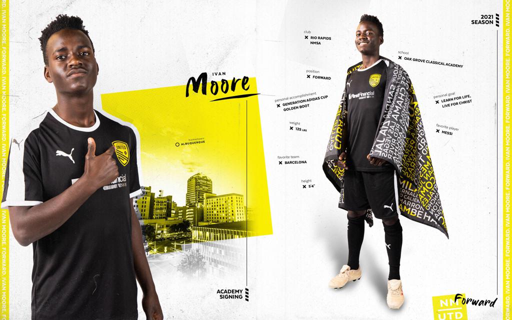 (February 24, 2021) Albuquerque, NM – New Mexico United and the Somos Unidos Foundation are thrilled to announce the signing of the thirteenth Academy player in their history. Forward Ivan Moore will join the New Mexico United Academy Team for the 2021 season. Moore plays club soccer at Rio Rapids Academy.