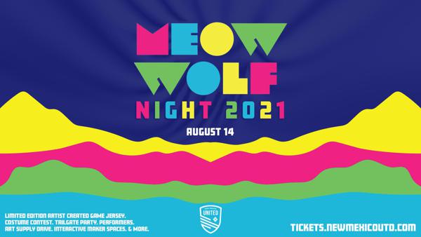 ALBUQUERQUE, NM (July 27, 2021) – New Mexico United professional soccer team and arts and entertainment group Meow Wolf announced today they will hold the second “Meow Wolf Night” on Saturday, August 14, 2021, when United takes on the El Paso Locomotive.